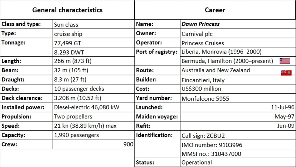 As of 2009, Dawn Princess sails Australia and New Zealand year round.